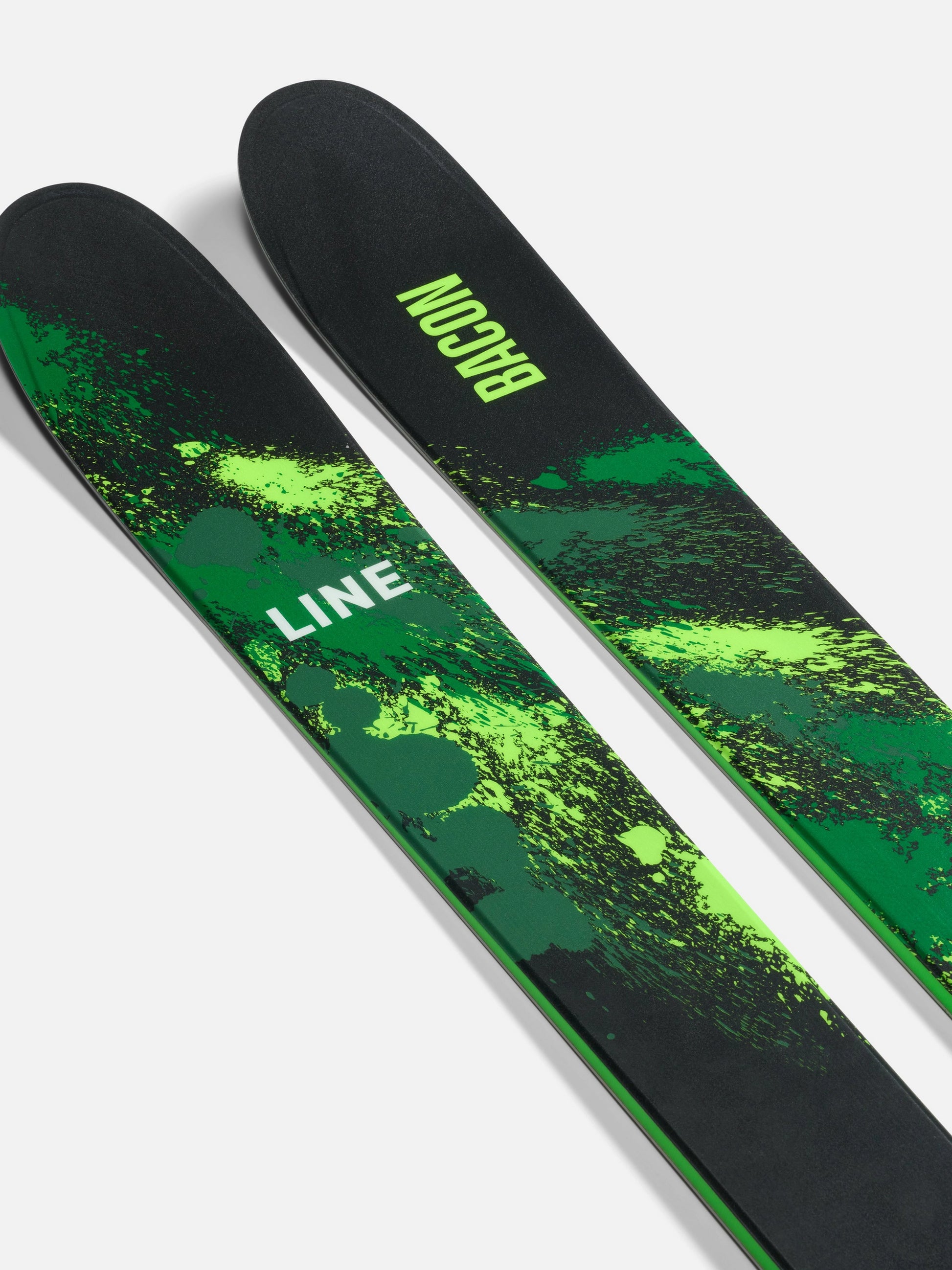 The all-new LINE Bacon 108. Created with all-new Thin Tips, Thick-Cut Sidewalls, and Bio-Resin technologies, the Bacon 108 is a refined and improved iteration of the coveted Sir Francis Bacon. With a versatile 108mm waist width, symmetrical flex, lower swing weight, and durability improvements, the Bacon 108 is your ticket to an all-mountain freestyle ski that can float and butter through powder without sacrificing hard-pack and park performance.