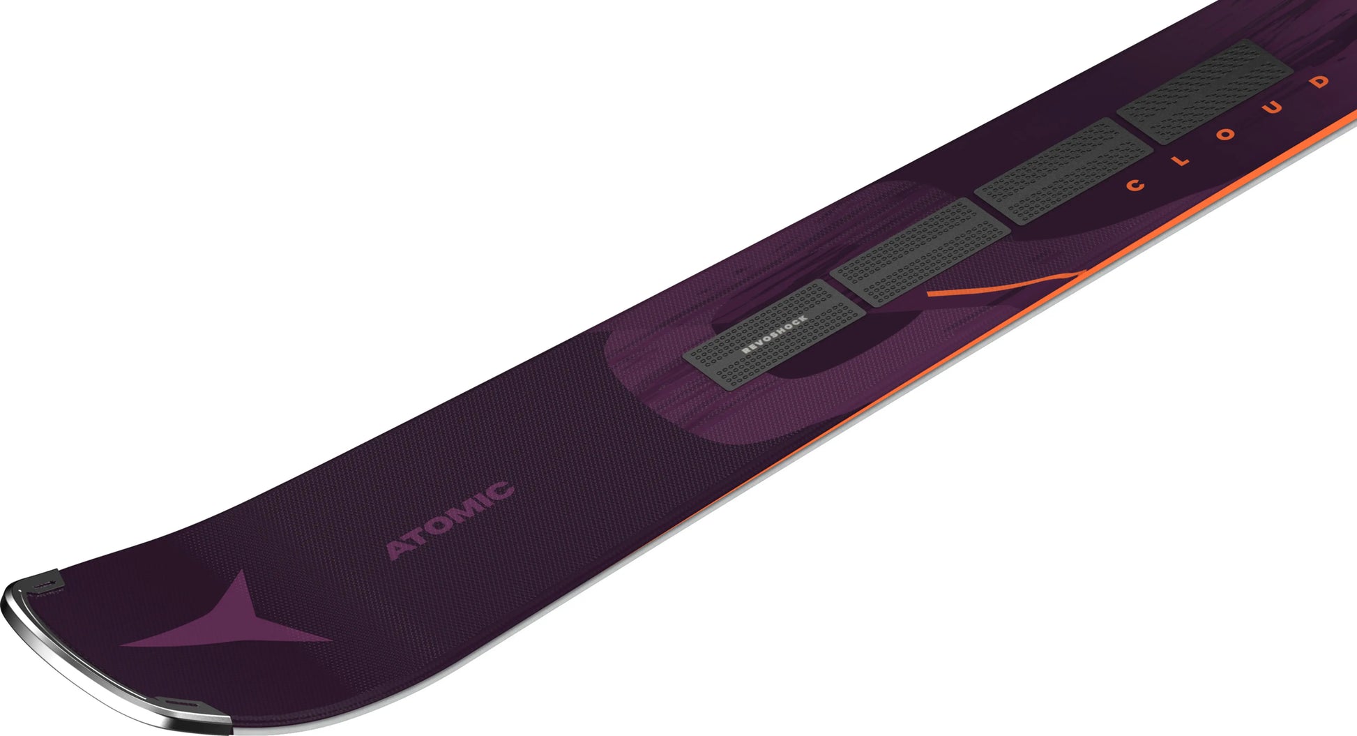 The Atomic Cloud Q12 Revoshock C takes you from open to close without losing any enthusiasm. Designed with advanced to expert female skiers in mind, the Cloud Q12 Revoshock C features an 83mm waist and Multi Radius Sidecut to create total versatility in on-piste skiing performance. Short radius turns through the bumps or the variable snow of a storm day are just as easy and fun as laying the ski on edge and arcing a GS turn down a pristine ribbon of corduroy. Revoshock C keeps the ski smooth and vibration free, for confident performance that maintains quickness in every turn. Dura Cap Sidewall construction creates solid edge grip, and the Flite Woodcore keeps the performance quick and responsive. The Cloud Q12 Revoshock C can crank up the speed in the morning, and be equally fun dialed back in the afternoon. It’s is the ultimate do-everything ski for the groomers.