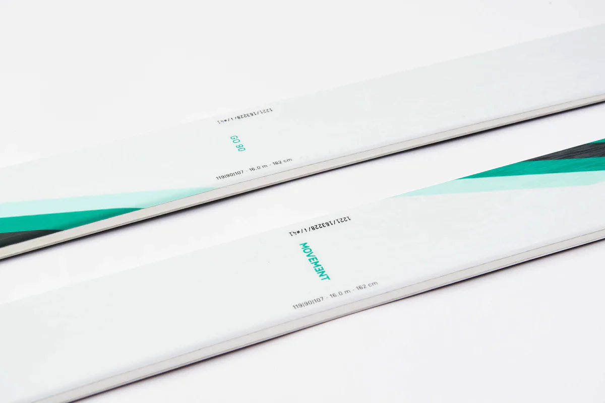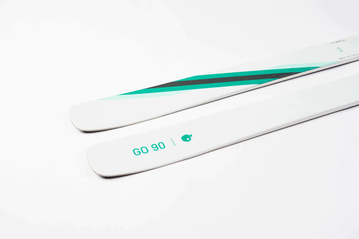 For women skiers looking for a freetouring ski, the GO 90W is made for them. Whether it's on challenging couloirs, varied terrains, powder, or simply long tours, not to mention the ski resorts where its attacking temperament excels, the GO 90W is a super versatile ski. Light, stable and very grippy with a paulownia wood and double titanal construction, the GO 90W differs from the unisex version by the positioning of the mounting point and a more flexible fiberglass.