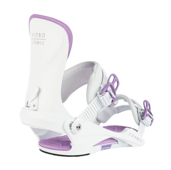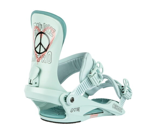 The women´s Cosmic binding offers a universal minimalistic design for all-terrain fun, with its forgiving flex and easy-to-use features, for women who love turning, pow slashing, and tweaking their way through the marked runs. The Women´s Transmission Base Frame holds your boots seamlessly, while the EVA Dampening and Premium Comfort ankle strap keep your feet comfortable no matter how choppy or icy the conditions are. Strap into a pair of the women´s Cosmic snowboard bindings to experience a pillow-like cushioning and a fit so good it has to be from another universe. Let the Cosmic bindings take your riding levels easily and comfortably past the cosmos!
