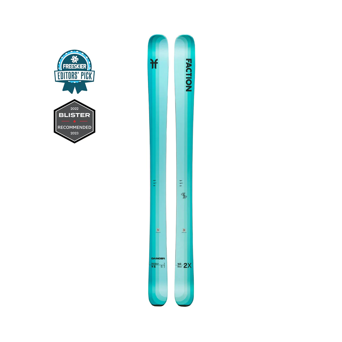 The Faction Dancer 2X is your go-to for pure all-mountain performance. Two razor-thin sheets of titanal complement the sustainably-sourced wood core for the ideal blend of up-tempo energy, light weight and stable, no-chatter, full-confidence handling. Its 96 mm waist is versatile to handle all conditions and terrain. You'll even float and dance above the choppy stuff thanks to the perfect touch of rocker. Backed by the finest, most durable Austrian construction, powered 100% by renewable energy.